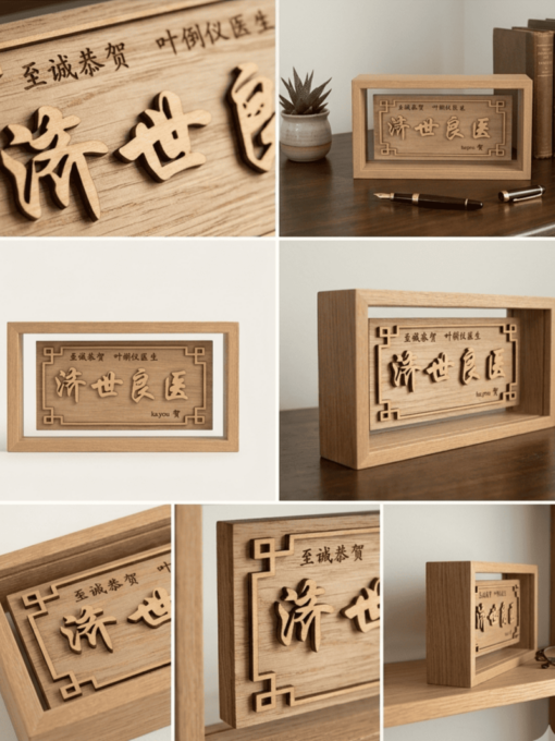 Crafted from solid wood with gold-painted lettering, this mini plaque brings the grandeur of traditional opening gifts to businesses. Designed to invite wealth and success wherever it sits.